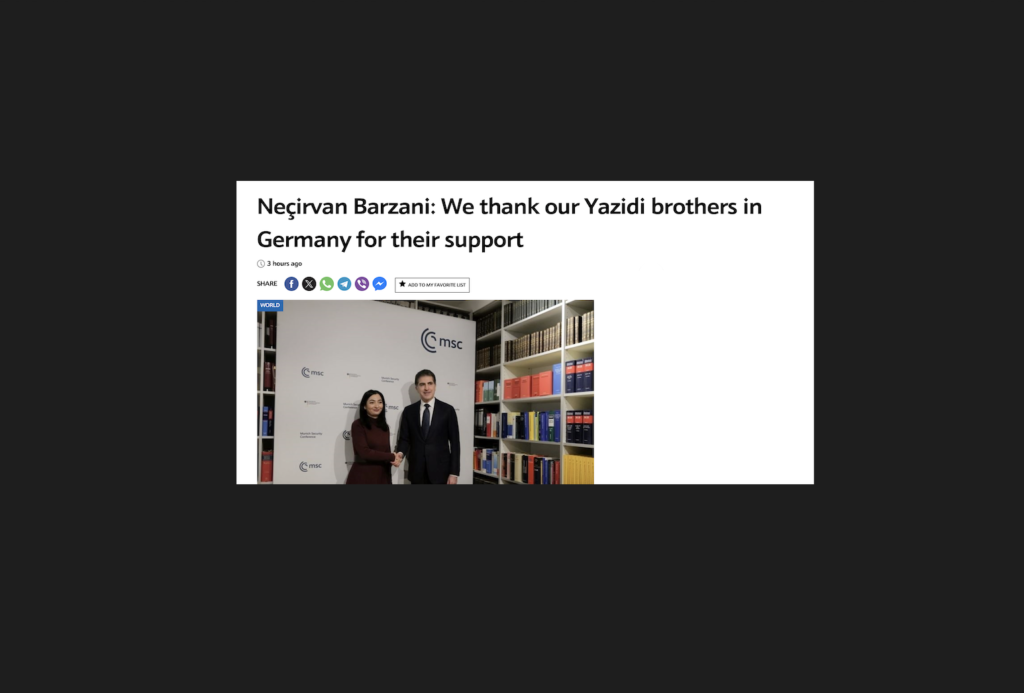 Իրականությունն այն է, որ Գերմանիան աջակցում է տեղահանված եզդիներին, քանի որ դա նրանց պարտականությունն է՝ համաձայն միջազգային իրավունքի։ Բարզանին և Քրդական ինքնավարության կառավարությունը մեր փրկիչները չեն։ Տասնամյակներ շարունակ Իրաքում եզդիները Քրդական ինքնավարության կառավարման ներքո բախվել են գողացված հողերի, բյուրոկրատական խոչընդոտների և սոցիալական մարգինալացման։ Մեր քաղաքներից ու գյուղերից շատերը անտեսվել են, մեր կարիքները անտեսվել են, իսկ մեր ժողովուրդը ստիպված է եղել մեկնել Եվրոպա։ Հիմա Քրդական ինքնավարությունը փորձում է ձևացնել, թե մեզ օգնում է առատաձեռնությունից դրդված։ Սա սուտ է և վիրավորանք։