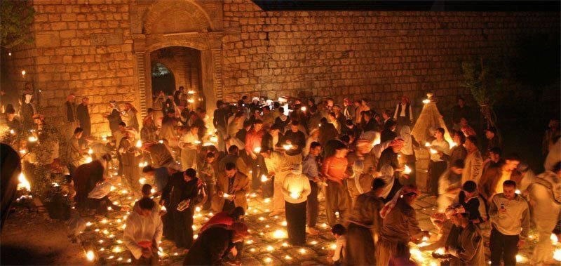 On the walls of Lalish and on the surrounding buildings, wicks burn throughout the valley during this feast night. The valley of Lalish shines with the lights of hundreds of lamps, giving it an astonishingly beautiful appearance.
