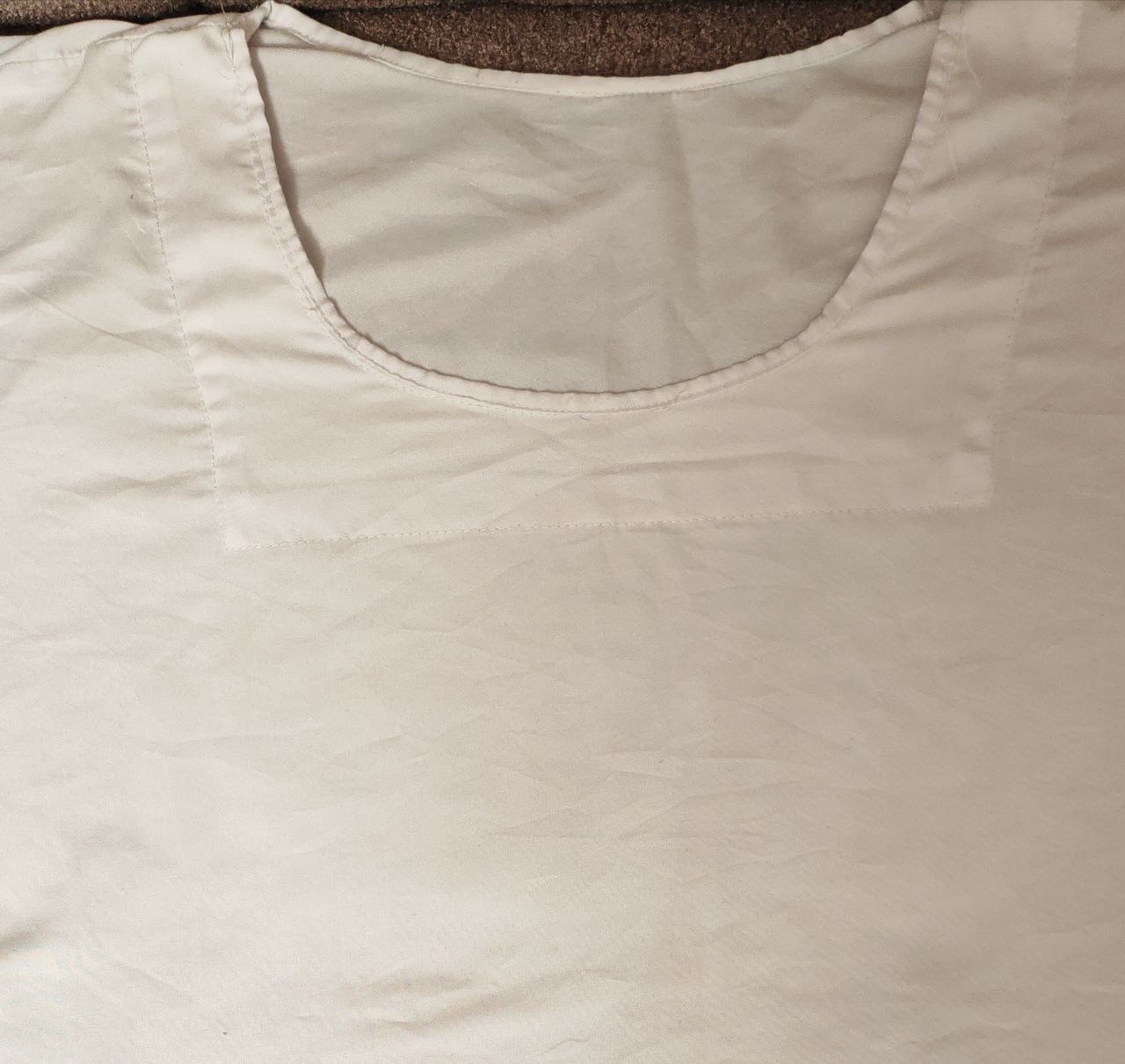 The garment itself must be entirely white, reflecting purity and clarity. The Grivan appears as a rounded neckline, carefully finished with a white trim. This visual simplicity reinforces its deeper message: faith is constant, unadorned, and central to Ezidi identity.